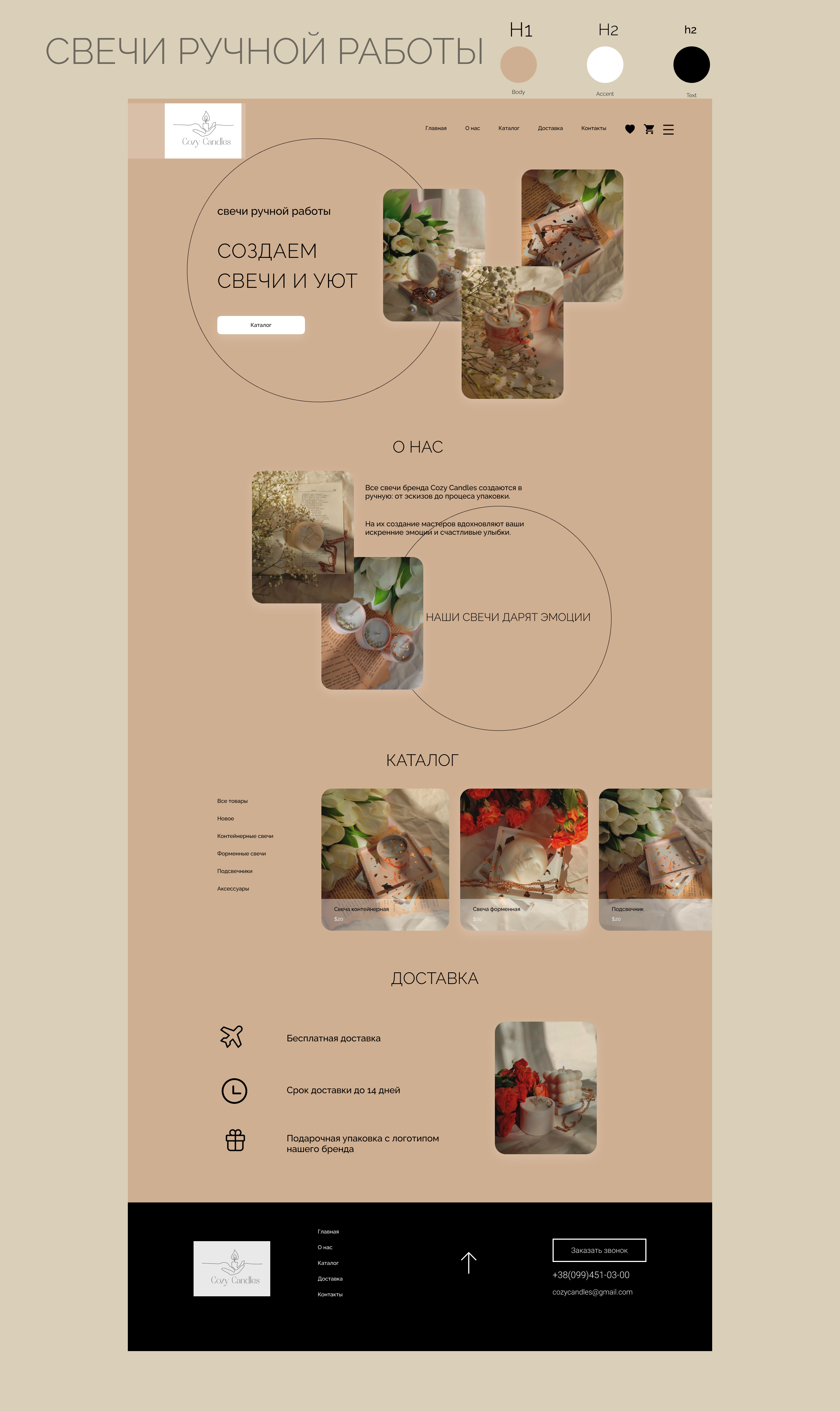 Уютный и легкий дизайн сайта для магазина свеч ручной работы.